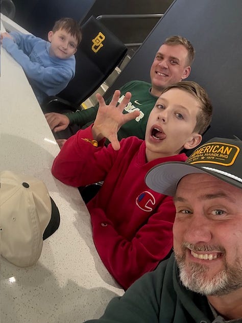 This week, my pastor, my boys, and a few guys I disciple went to a Baylor basketball game. Baylor dominated. It wasn’t even close. But that’s not what stayed with me. It was the time together. Sitting shoulder to shoulder. Laughing. Talking. Watching my sons around men I trust. No agenda. Just presence.