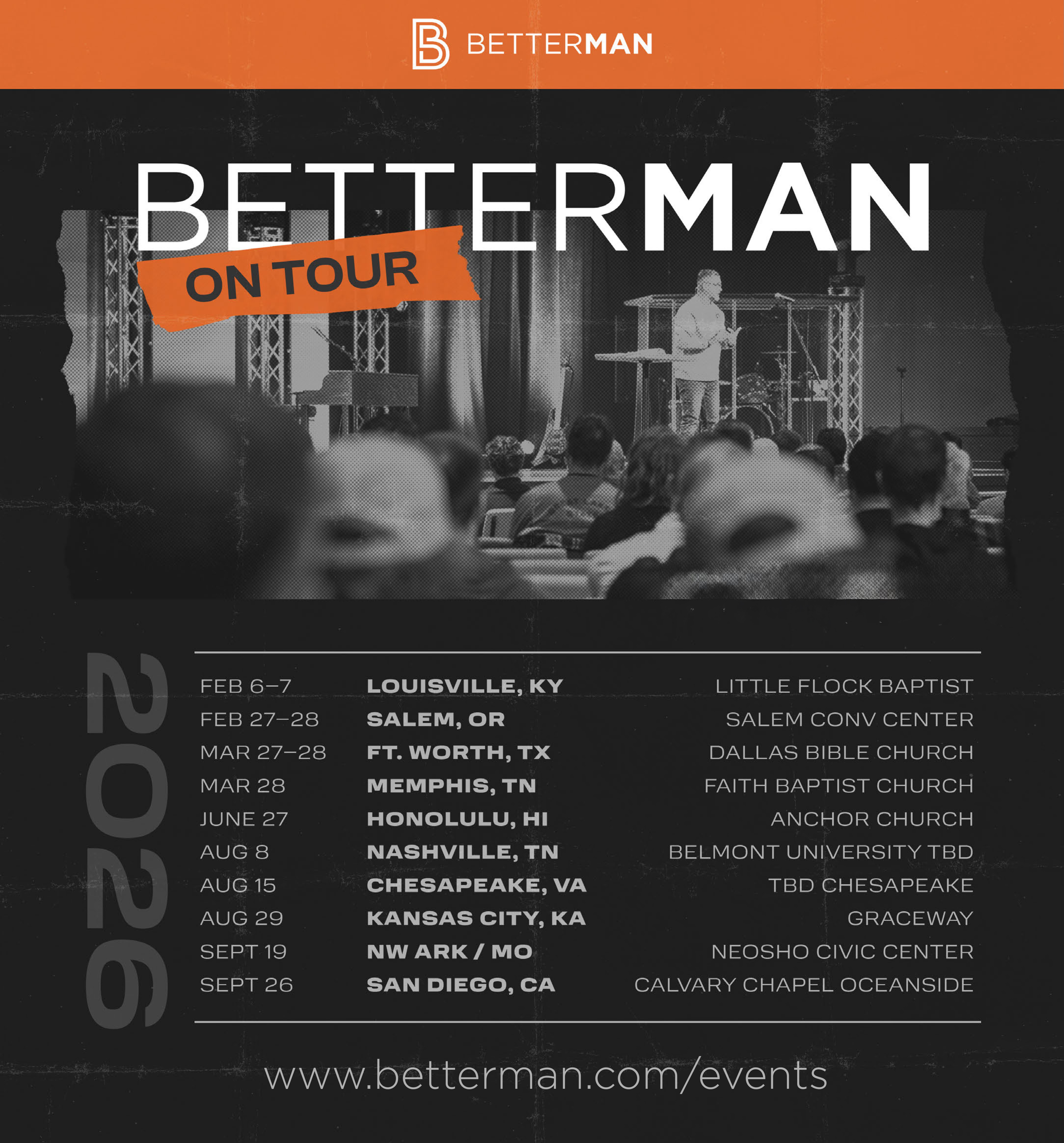 Brothers, I am pleased to announce the official 2026 BetterMan Tour! More info to come, but you won’t want to miss this!