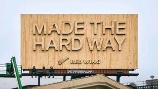 Red Wing Boots released a new national campaign this week. Across 15 cities, they unveiled a 14x48ft billboard. The catch? The billboard is made of real hardwood, hand-carved. It is incredible.
